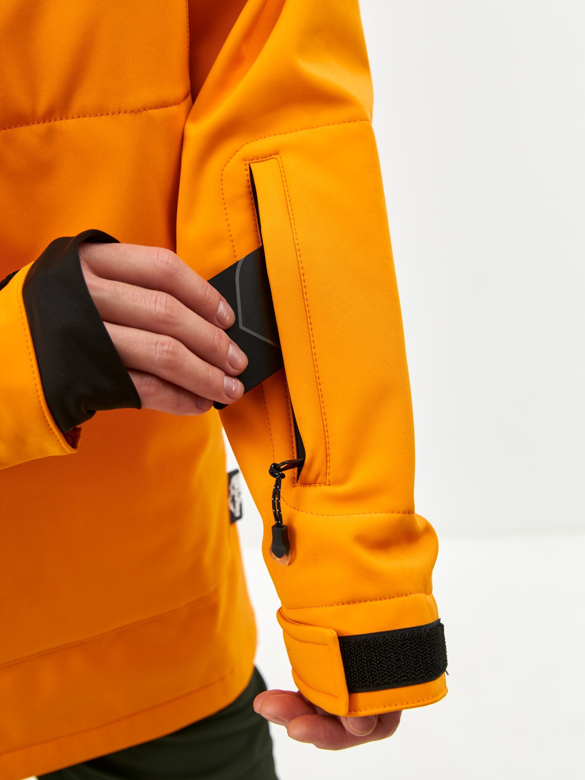 • Карман на рукаве для ski-pass, нагрудный карман для мелочей и вместительный карман-кенгуру — все на влагозащитных молниях.