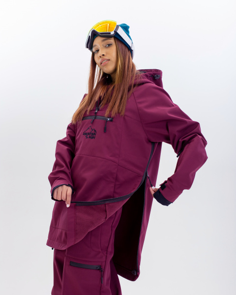 Зимний анорак Wine — универсальная модель унисекс, созданная для активного образа жизни в холодное время года. Выполнен из мембранной ткани Softshell 10 000/10 000 с флисовой подкладкой, этот анорак обеспечивает надежную защиту от ветра и влаги при температуре от -25 до +10°С.