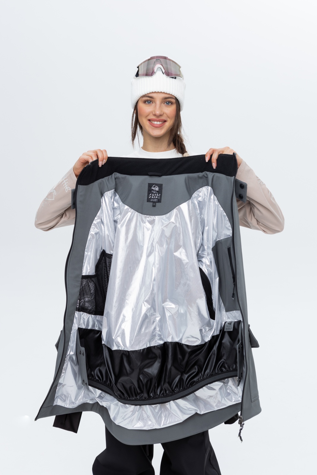 • Фольгированная подкладка «соты» — удерживает тепло, создавая эффект термоса, при этом обеспечивает вентиляцию.