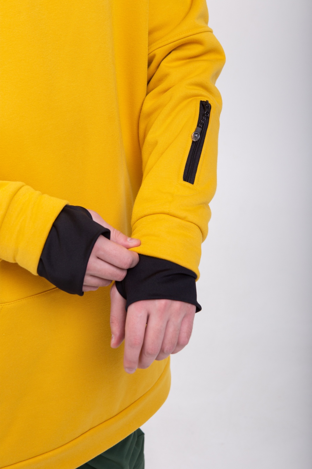 - Выполнено из футера трёхниточного с начёсом плотностью 340 г/м² — мягкий и тёплый материал с высоким содержанием хлопка.
